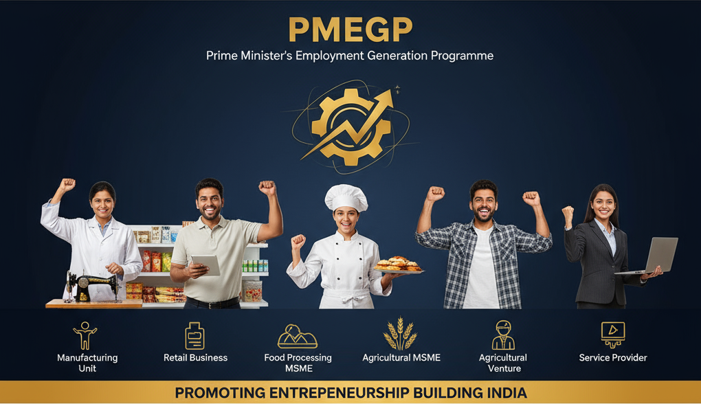 The PMEGP is a credit-linked subsidy scheme launched in 2008 by the Government of India, designed to generate employment and self-employment opportunities across rural and urban areas. The scheme merges two earlier programs (PMRY and REGP) and is managed nationally by the Khadi and Village Industries Commission (KVIC).